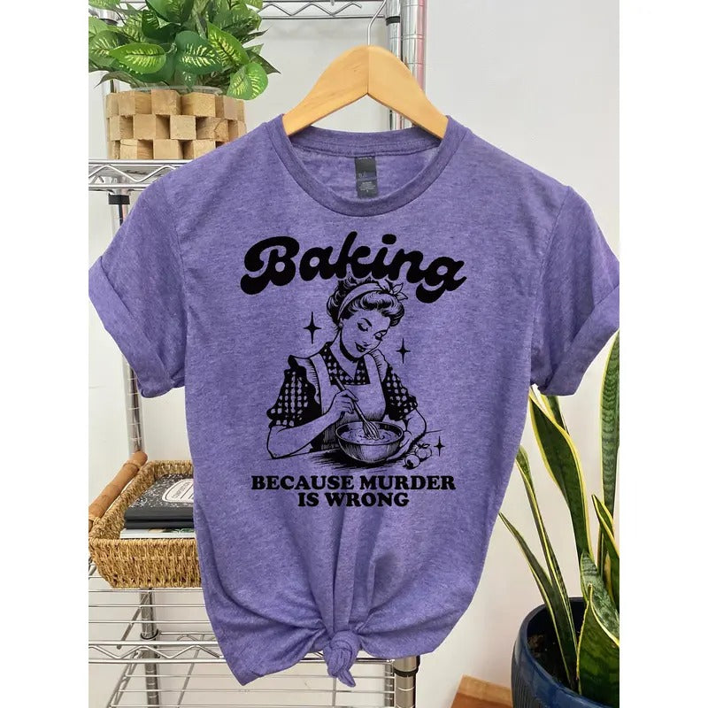 #064 - Baking Because Murd3r is Wrong - - Print Unisex Crew neck Tee T-shirt
