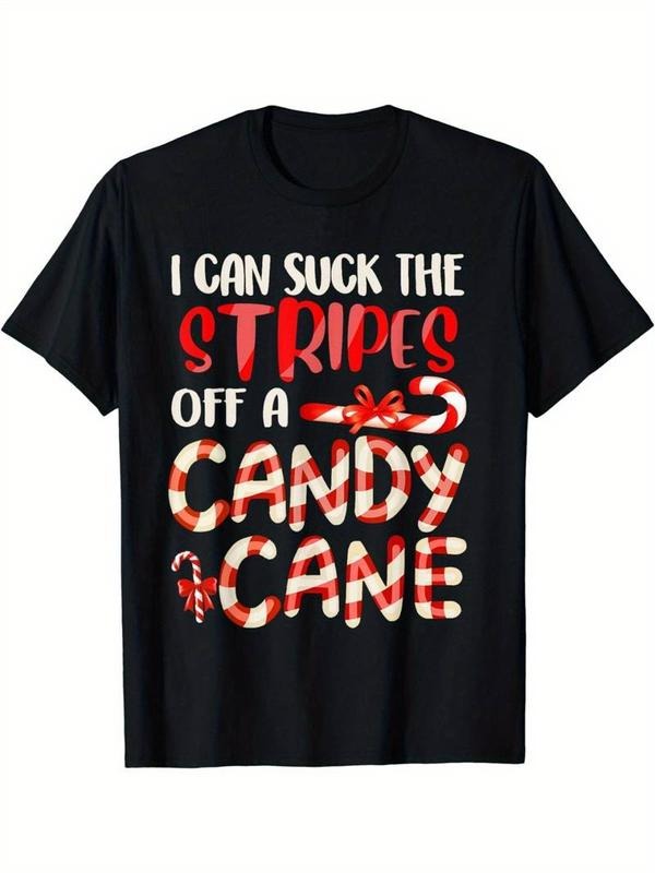 [100% Cotton] Funny Dirty Candy Cane Christmas T-Shirt - Hilarious Santa Black Cotton Unisex Tee