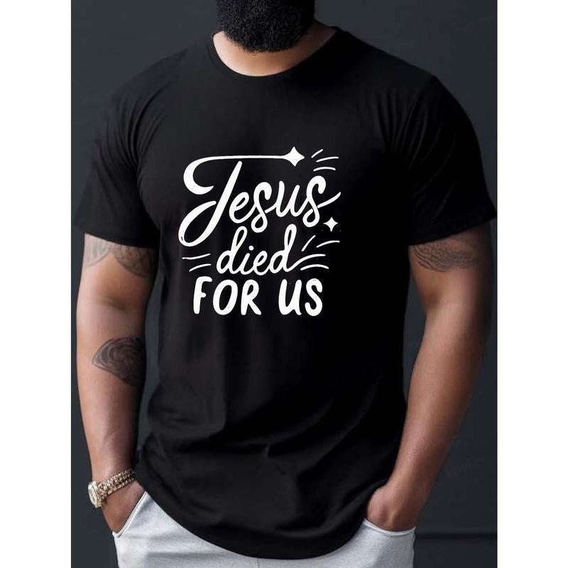 100% cotton T-shirt, JESUS DIED FOR US Tees For Men, Casual Fonts Print T-Shirt, Short Sleeve T-shirt For Summer Made in USA