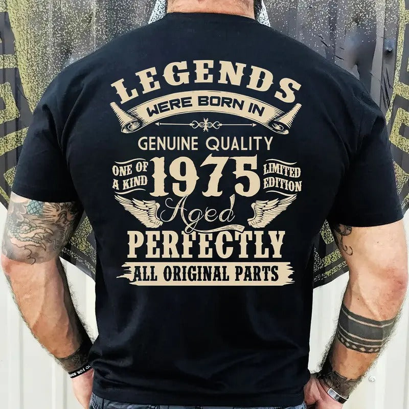 1975 Vintage Birthday Gift Shirt for Men - Legends Were Born in '75 - Dad's 49th Birthday Gift Cotton Fabric