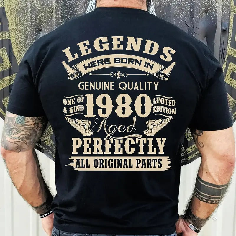 1980 Vintage Birthday Gift Shirt for Men - Legends Were Born in '80 - Dad's 44th Birthday Gift Cotton Long Fabric Menswear