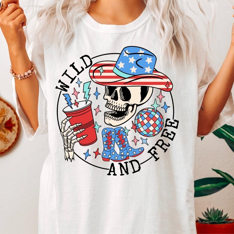 4TH OF JULY SHIRT, WILD AND FREE SHIRT, JULY 4TH SHIRT UNISEX COTTON SHIRT, OVERSIZED HOLIDAY SUMMER SHIRT Comfort Fabric