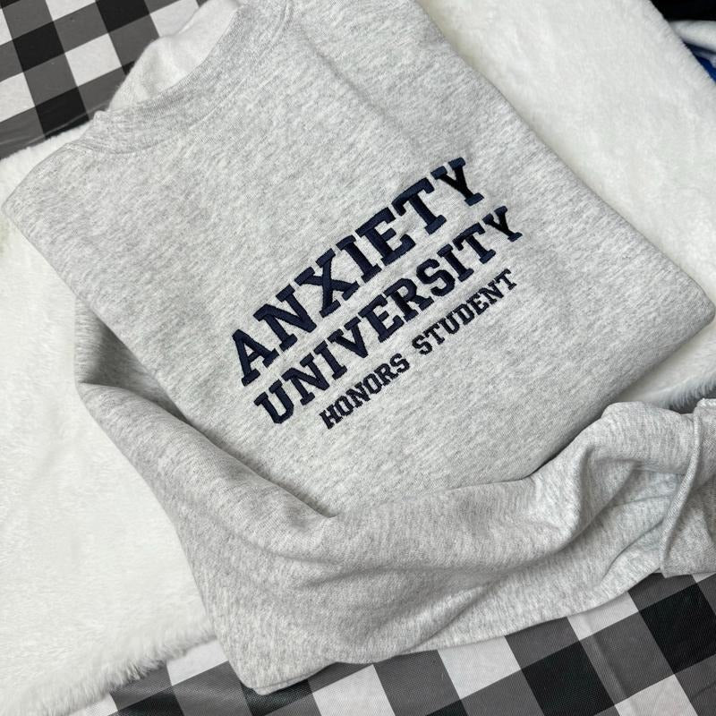 Anxiety University Embroidered Sweatshirt, Y2K Style Embroidered Unisex Tshirt, Sweatshirt and Hoodie Funny Clothing, Gift For Her, Mental Health Shirt