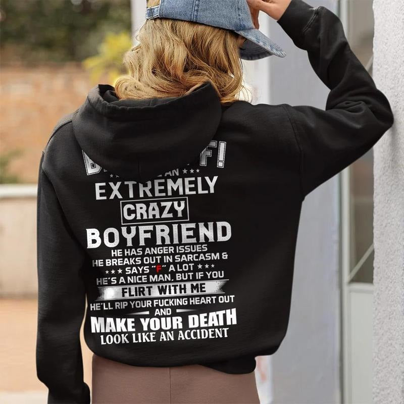 Back Off ! I Have An Extremely Crazy Boyfriend Sweatshirt, Gift For Girlfriend, Valentine's Day Gift, Gf Hoodie Gift, Unisex Crewneck Pullover Tee, Casual Clothing