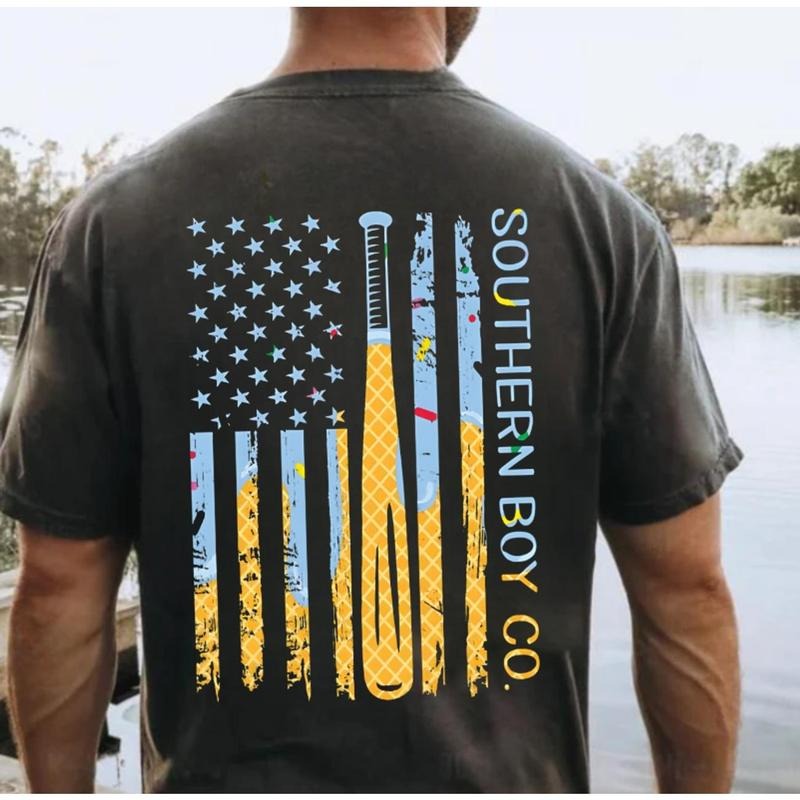 Baseball Ice Cream Bat Flag Tee, Short Sleeve Shirt, Fun Baseball Graphic, Stylish Fan Apparel LZDC5