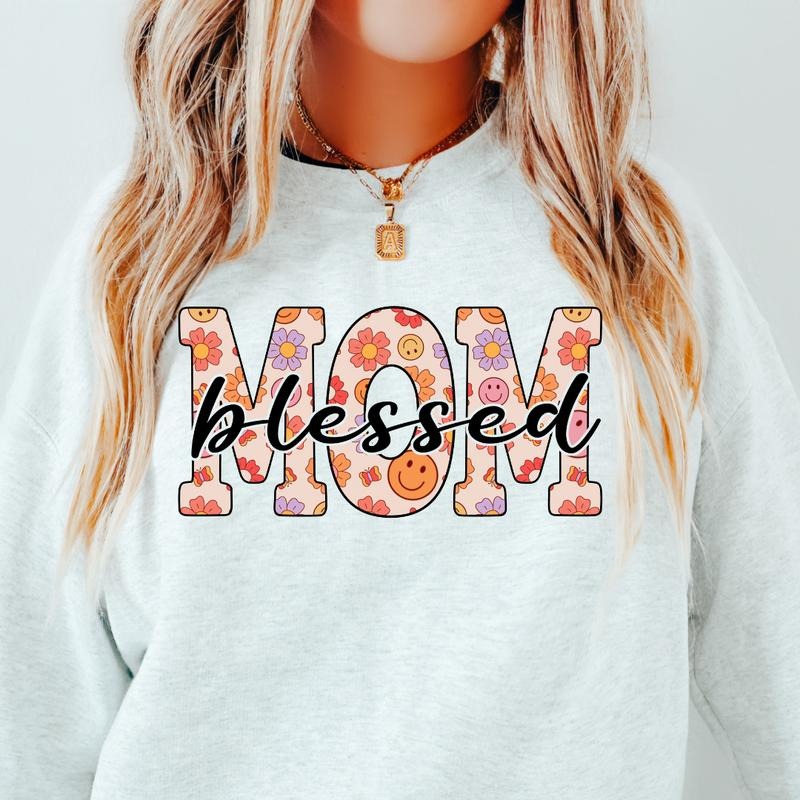 BLESSED MOM SWEATSHIRT (Crewneck Sweatshirt, Unisex Fit, Causal Sweatshirt for Christmas, Christmas Holiday Sweatshirt) Cotton Womenswear