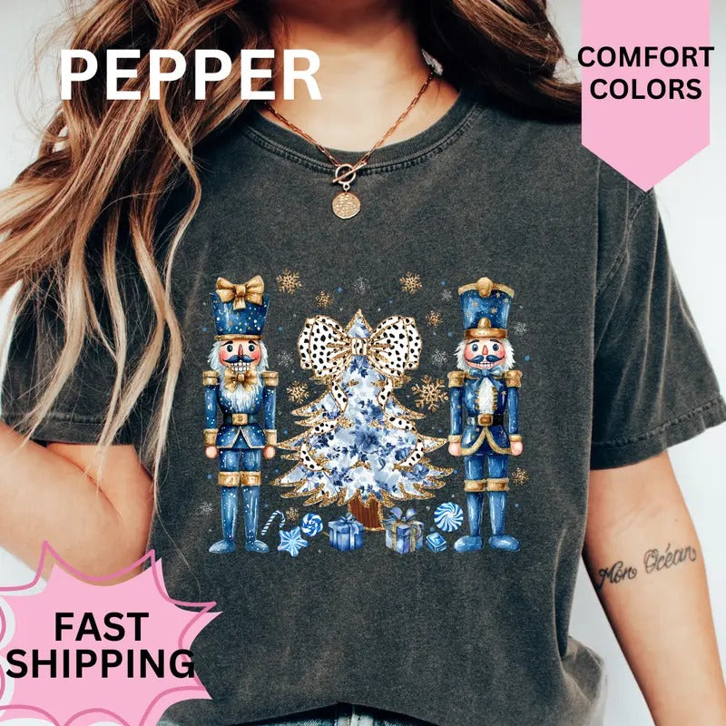 Blue Nutcracker Christmas Shirt, Comfort Colors, Christmas Coquette Shirt, Women's Holiday Tee, Casual Comfy Graphic