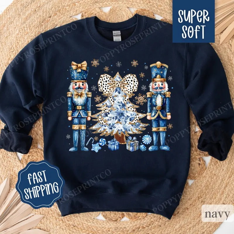 Blue Nutcracker Christmas Sweatshirt, Christmas Sweater, Women's Holiday Crewneck