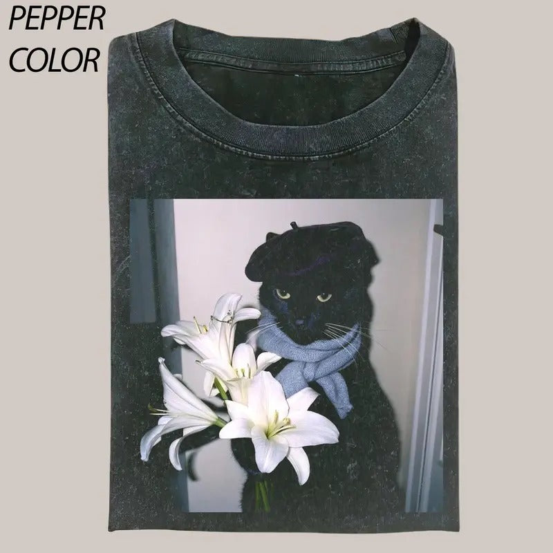 Cat love T-Shirt, Cat cute Vintage Graphic Tee, Funny Cat Shirt, cat and flowers Women's T-shirts Streetwear Top
