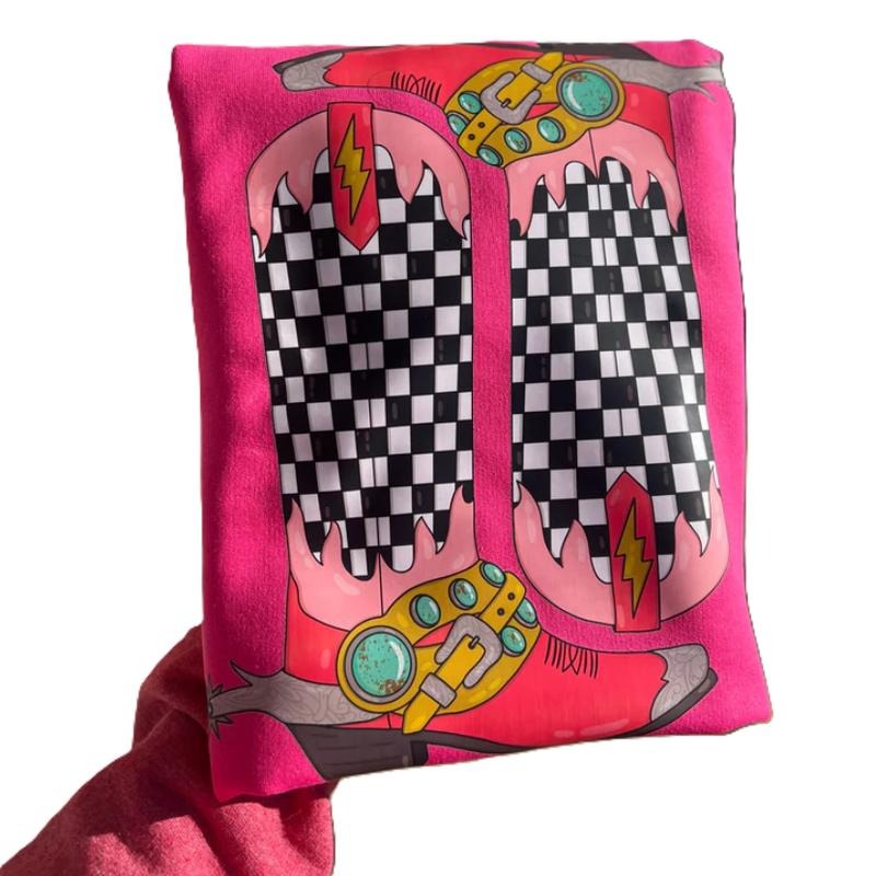 Checkered Boots Crewneck Sweatshirt western clothing stuff, western outfits women tops, country western girl clothes hoodies winter outfits for women