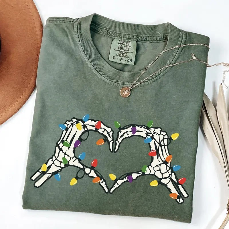 Comfort Colors Skeleton Christmas Shirt, Funny Christmas Shirts for Women, Halloween Christmas Tee