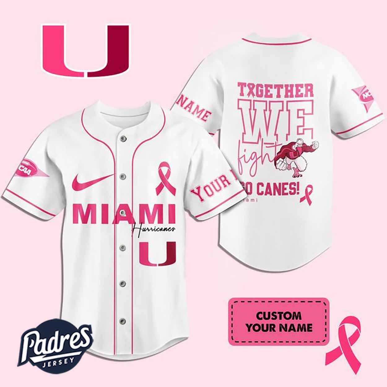 Custom NCAA Miami Hurricanes Breast Cancer Baseball Jersey - Padres Jersey Oasis: Elevate Your Baseball Style Game