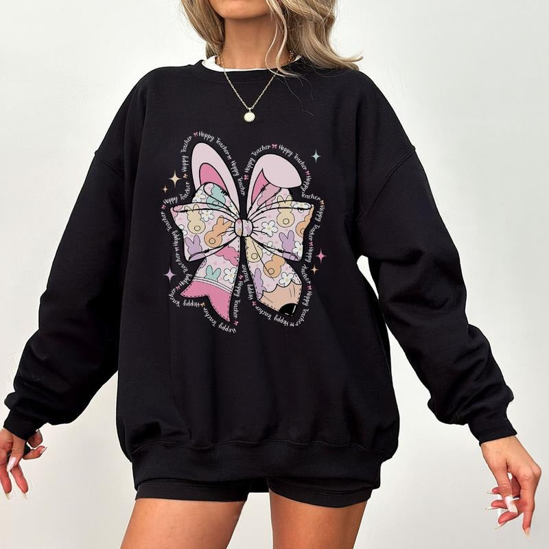 Easter Teacher Shirt, Bunny Bow Graphic Tee, Cute Spring Teacher Outfit, Pastel Easter Shirt for Educators, Teacher Appreciation Gift