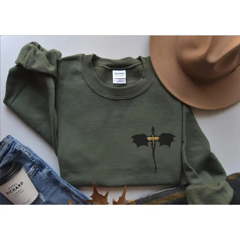 EMBROIDERED Basgiath War College Sweatshirt, Fourth Wing Embroidered Crewneck, Dragon Rider Shirt, Fantasy Bookish Hoodie, Bookish Shirt