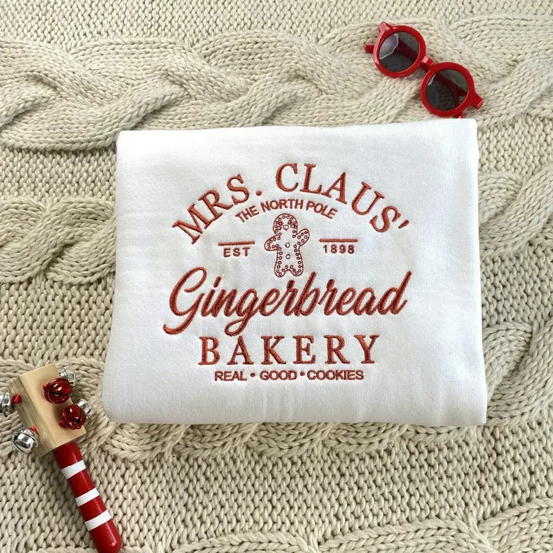 Embroidered Mrs. Claus Gingerbread Sweatshirt - Christmas Bakery Sweatshirt - Christmas Gift