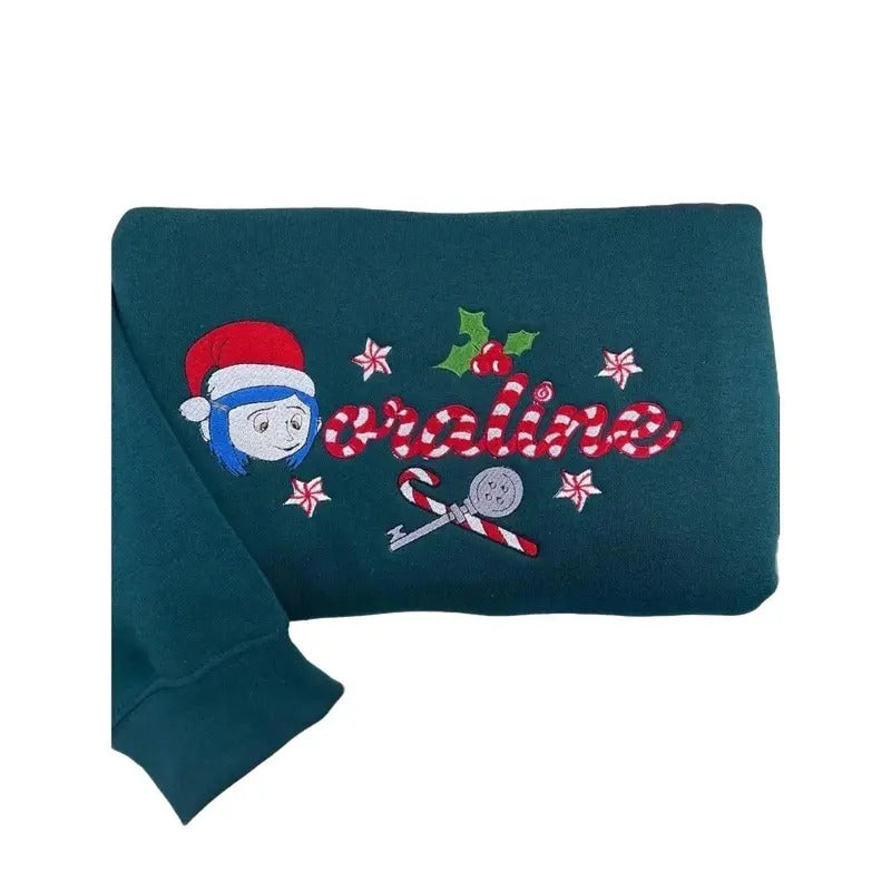 Embroidery Coraline celebrate Christmas Sweatshirt, Coraline Halloween Christmas Shirt, Coraline Horror Movies Hoodie, Christmas Hallowen Gift, Trendy design shirt, Graphic Shirt