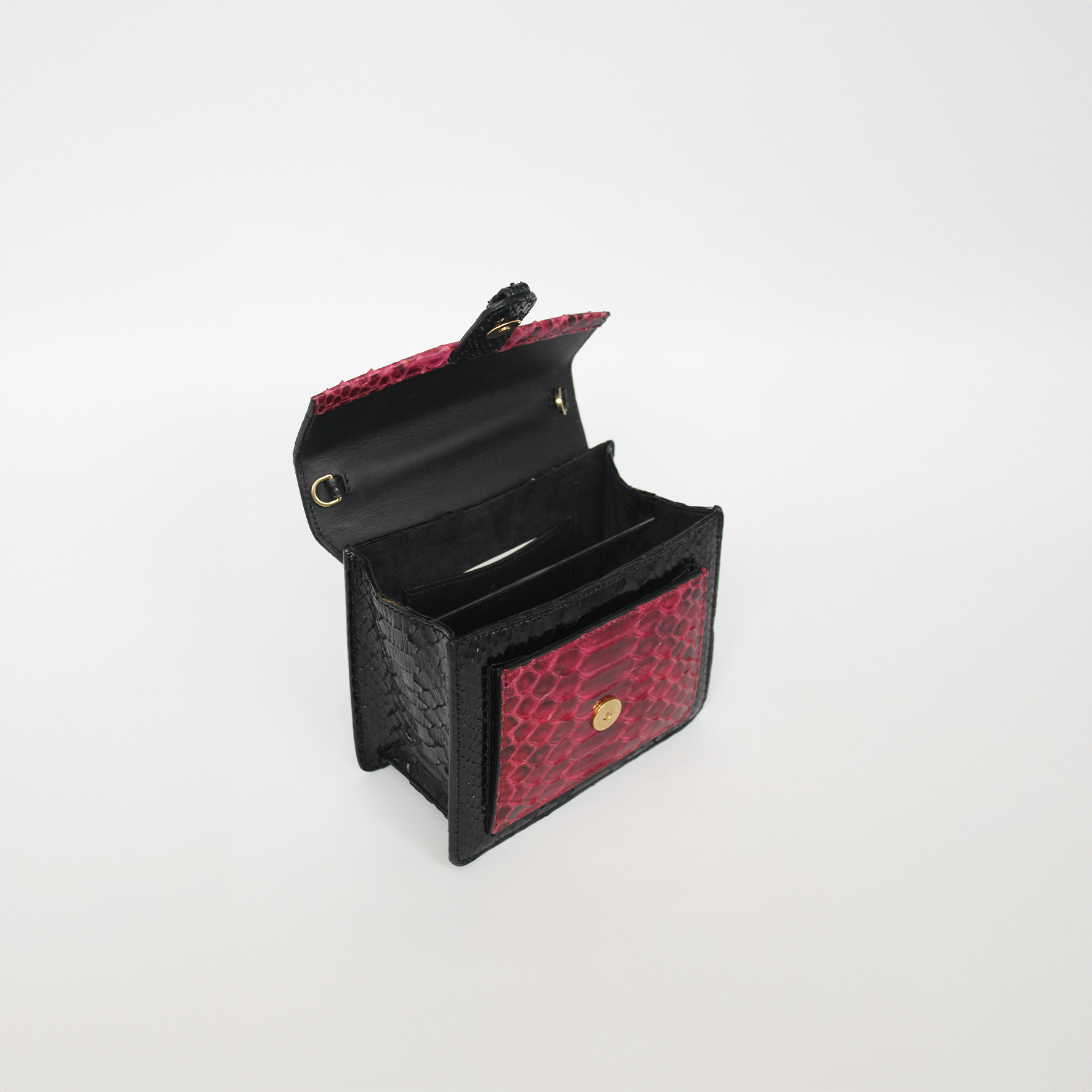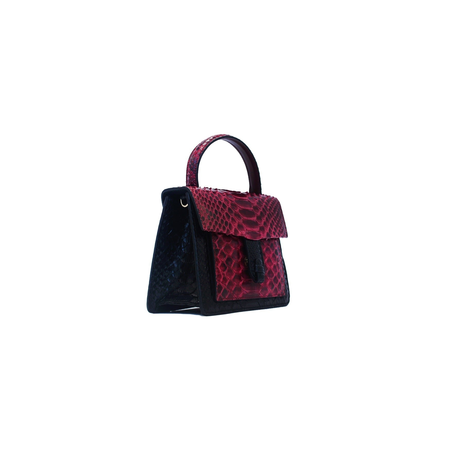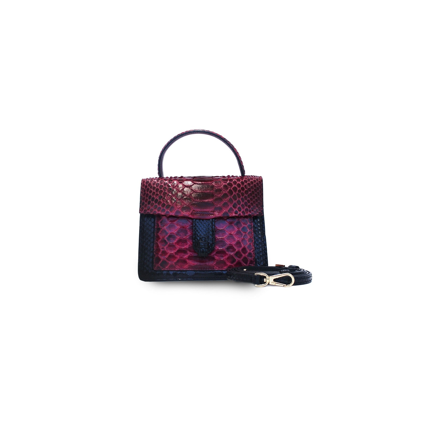 The Emma bag, a structured piece crafted in Italy from responsibly sourced Python, is a versatile accessory that can be carried by hand, as a shoulder bag, or as a crossbody. Its exterior features a front pocket for easy access to your essentials and our signature flap with a concealed magnetic snap. The interior showcases a slip pocket and a soft suede lining. The detachable cross-body strap adds to its versatility, making it a practical and stylish choice for any occasion.ย