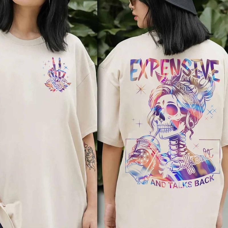Expensive Difficult And Talks Back Skeleton Rock Mom T-Shirt Casual Top for Women in Light Polyester Latarshia Grant