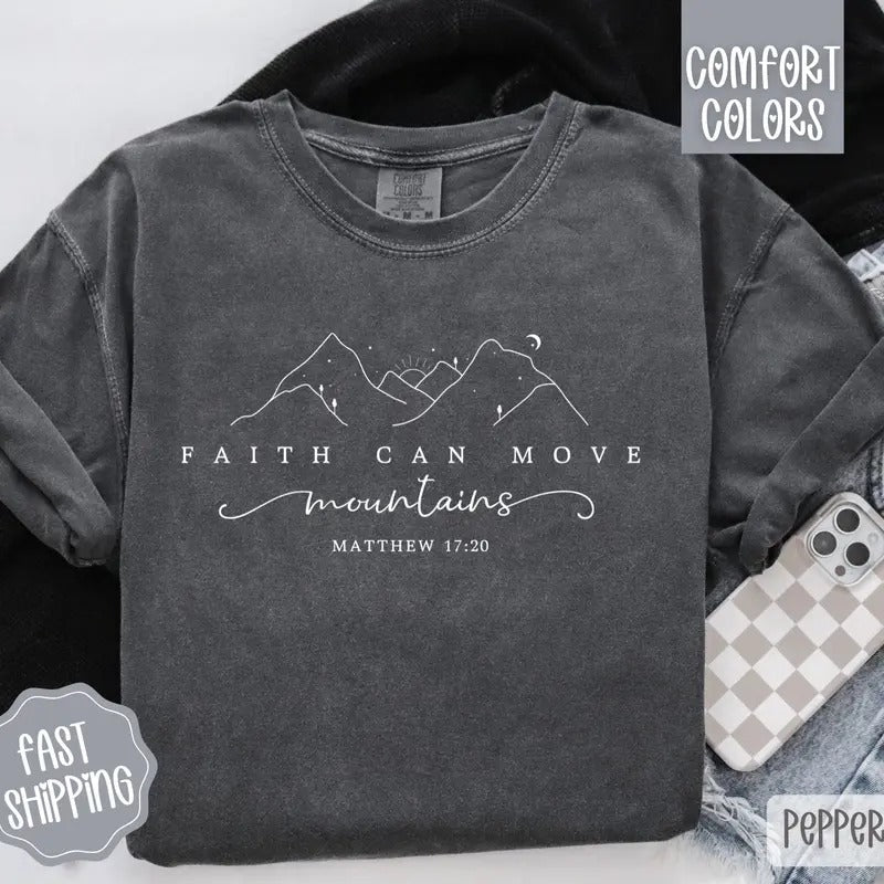 Faith Can Move Mountains Shirt Comfort Colors, Religious Tshirt, Christian Women's Tee