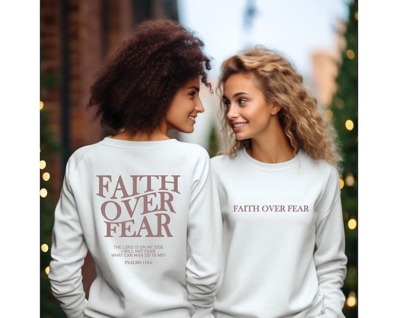 Faith Over Fear Christian Sweatshirt - Long Sleeve Round Neck T-Shirt with Bible Verse Design, Casual Style for Men and Women, Cotton - Menswear