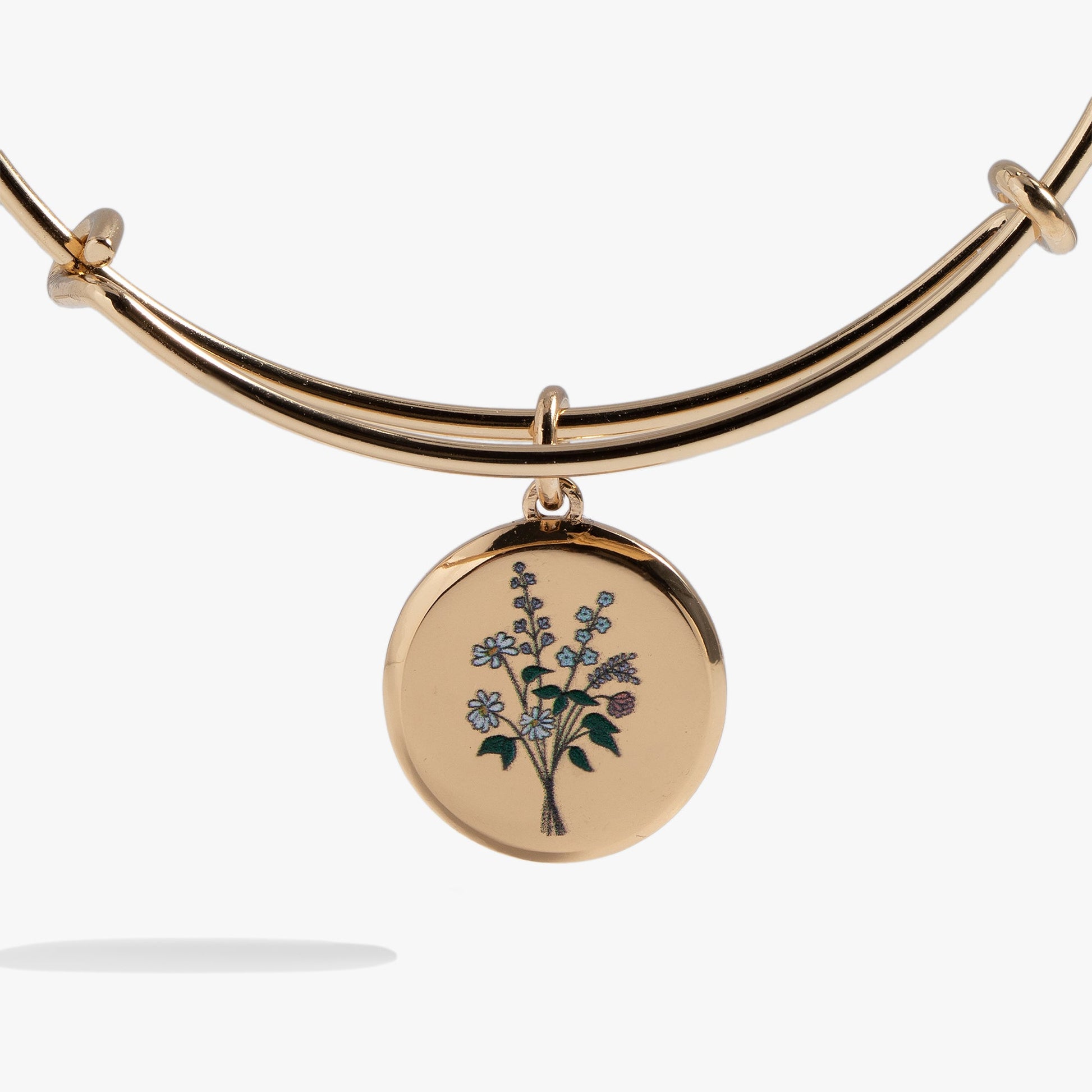 It's the celebration of a lifetime love. This flower anniversary bangle features a round charm with a sweet floral bouquet hanging from an expandable wire bangle. Gift it — or wear it — as a sweet reminder of a forever promise.