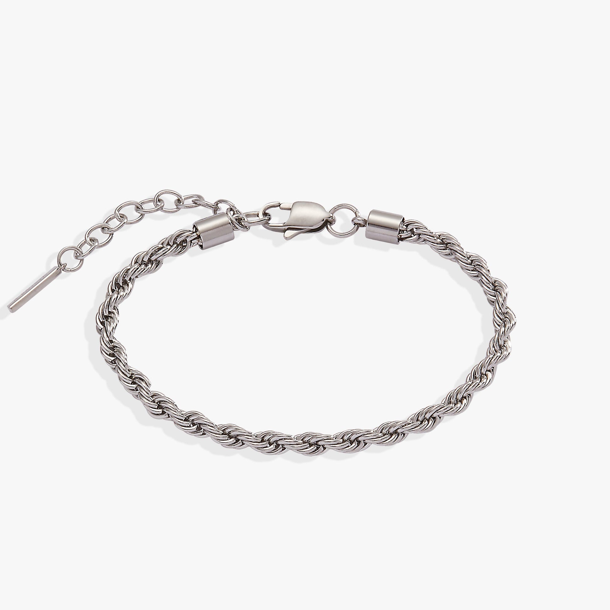 A layerable essential with subtle shine. This stainless steel rope chain bracelet is designed to be worn solo or stacked, with just enough texture to stand out. It wonโt tarnish, it pairs perfectly with other everyday chains, and it can even hold interchangeable charms. Finished with a sliding adjustable closure for a custom fit.