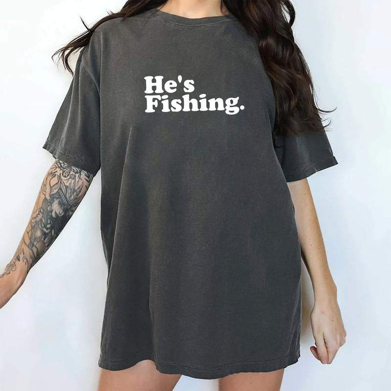 Funny Fisher Wife Comfort Colors Shirt, Funny Abandoned Wife Angler Unhinged Tees, He's Fishing Tee, Funny Fisherman Wife Oversized Graphic Tee