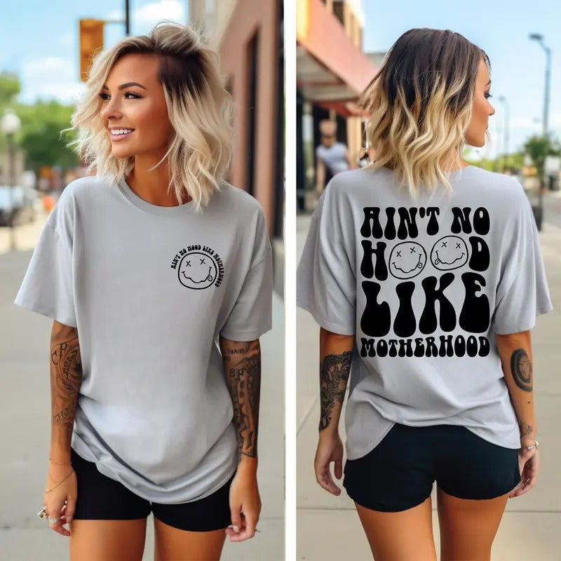 Funny Mom Svg Png Ain't No Hood Like Motherhood Funny Mothers Day Trendy Mom Png Sarcastic Retro Sublimation Front Back Svg Mom Life Svg TK62GN