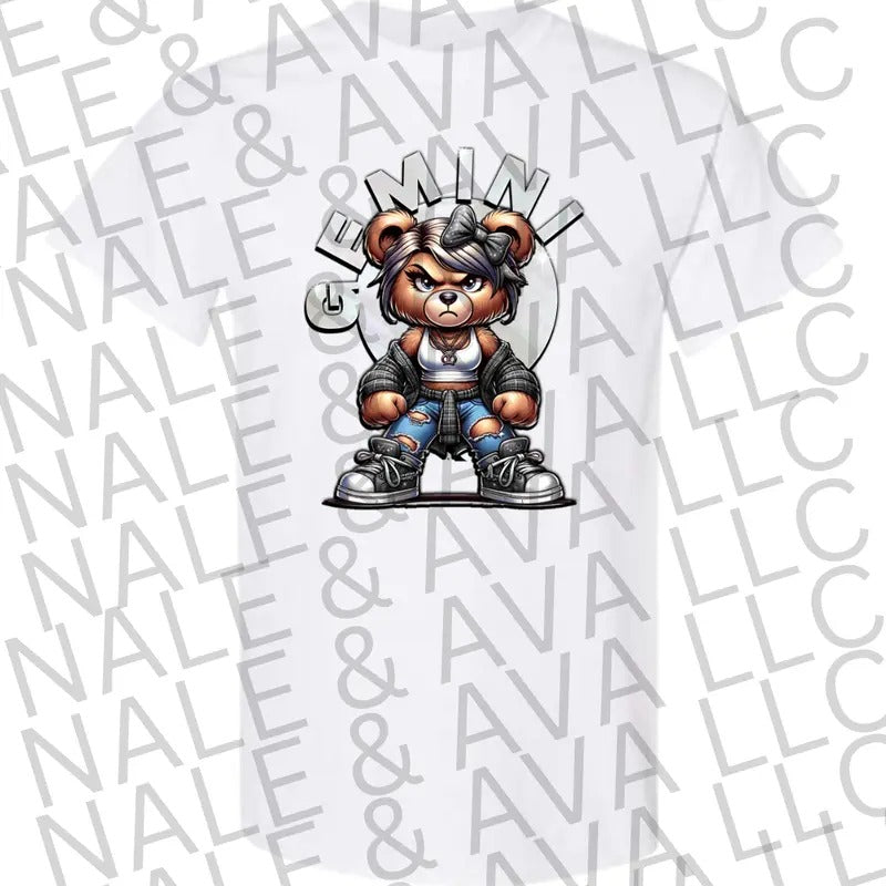 Gemini Girl Zodiac Bear Graphic T Shirt for Women