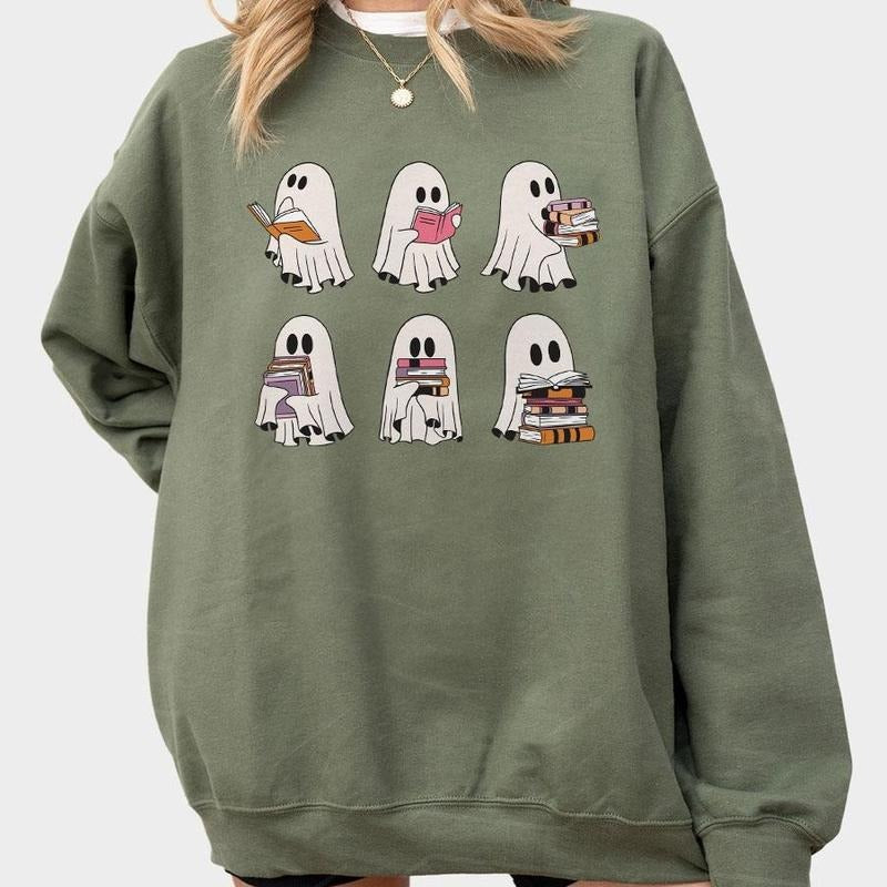 Ghost Reading Books Shirt, Bookish Halloween Comfort Tee, Halloween Teacher Gift, Librarian Halloween T-Shirt, Ghost TShirt, Boo Reading Books, Funny Book Lover Tee, Bookworm Women Top