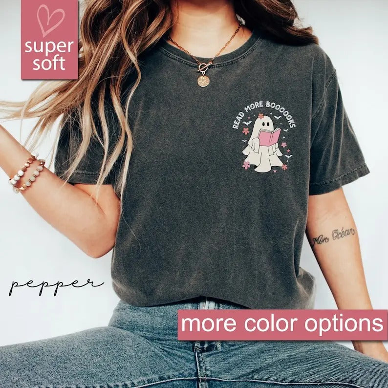 Ghost Reading Books t-Shirt, Bookish Halloween Shirt, Teacher Librarian Halloween Gift, Halloween Book Lover, Halloween School