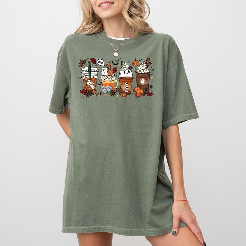 Halloween Coffee, Horror Movie, Spooky, Skeleton, Ghost, Witch, Skull, Aesthetic, Meme, Halloween, Costume, Tshirt, Women's Crew Neck, Crewneck