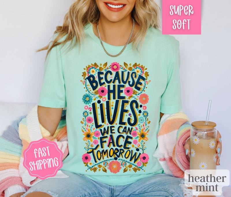 He Lives Shirt, God is Good Christian Tshirt, Religious Shirts, Boho Floral Shirt, Jesus Shirt, God Shirt, Church Shirt, Gift for Her Cotton Fabric