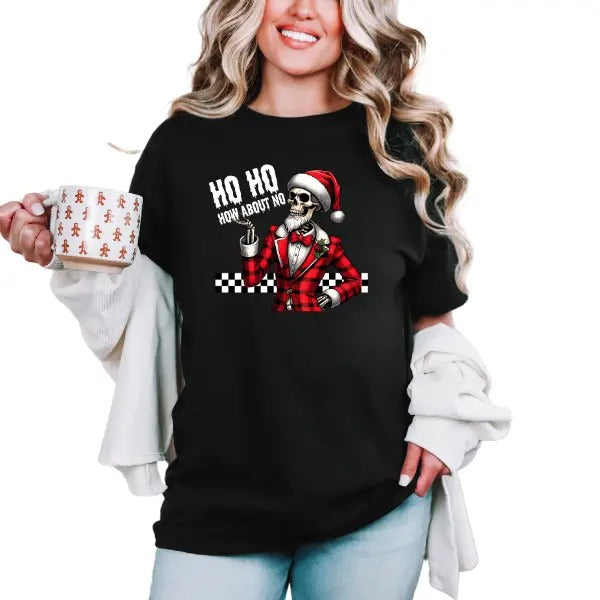 'Ho Ho How About No' Christmas Crewneck Sweatshirt, T Shirt, or Hoodie | Grunge Aesthetic Pullover Retro Vibes | Casual, Comfort, Skulls