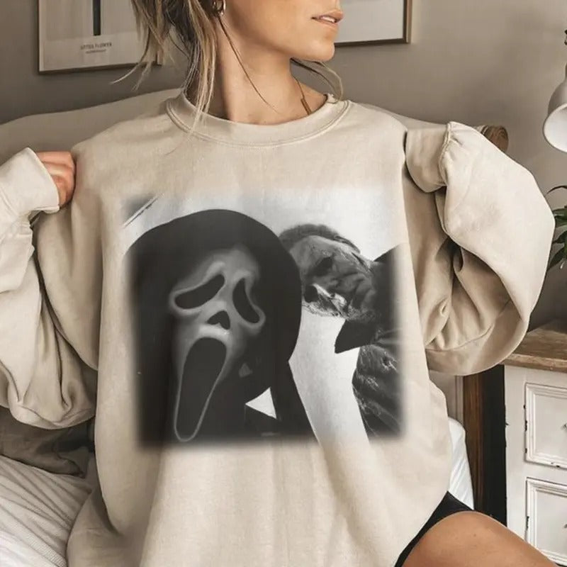 Horro Ghosttface x Michael Meyers Sweatshirt - TShirt - Hoodie, Halloween Shirt, Horro Movie Shirt, Halloween Gift, Tee Print