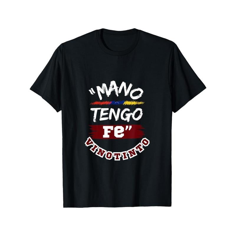 "I have faith" hands, I'm wearing a burgundy Venezuelan T-shirt. Made in USA