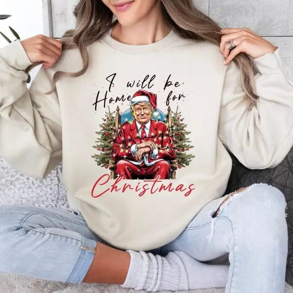 I'll Be Home For Christmas Funny Trump sweatshirt, Santa Trump sweatshirt, Christmas Trump sweatshirt, Republican Christmas sweatshirt, Xmas Gifts