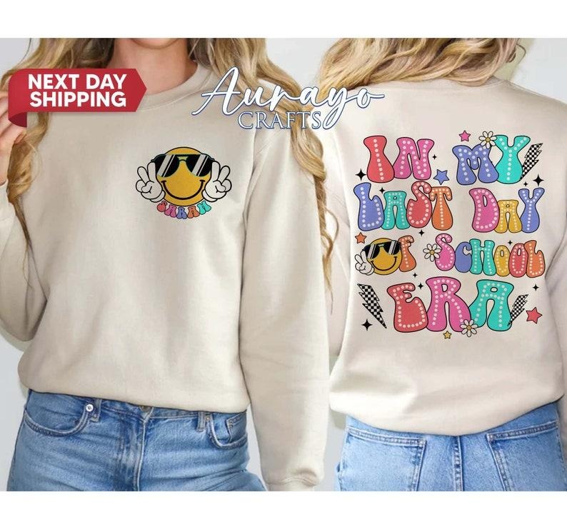 In My Last Day Of School Era Shirt, Custom Teacher Shirt, School's Out For Summer Shirt, Last Day of School Retro Happy Face