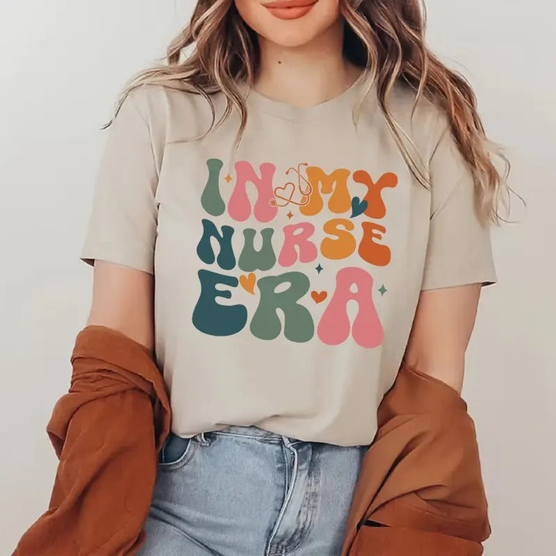In My Nurse Era T-shirt, Retro Concert Shirt, Gift For Nurse, Cool Nurse Shirt, Nurse Graduation Gift, Registered Nurse, ER Nurse Casual Cotton