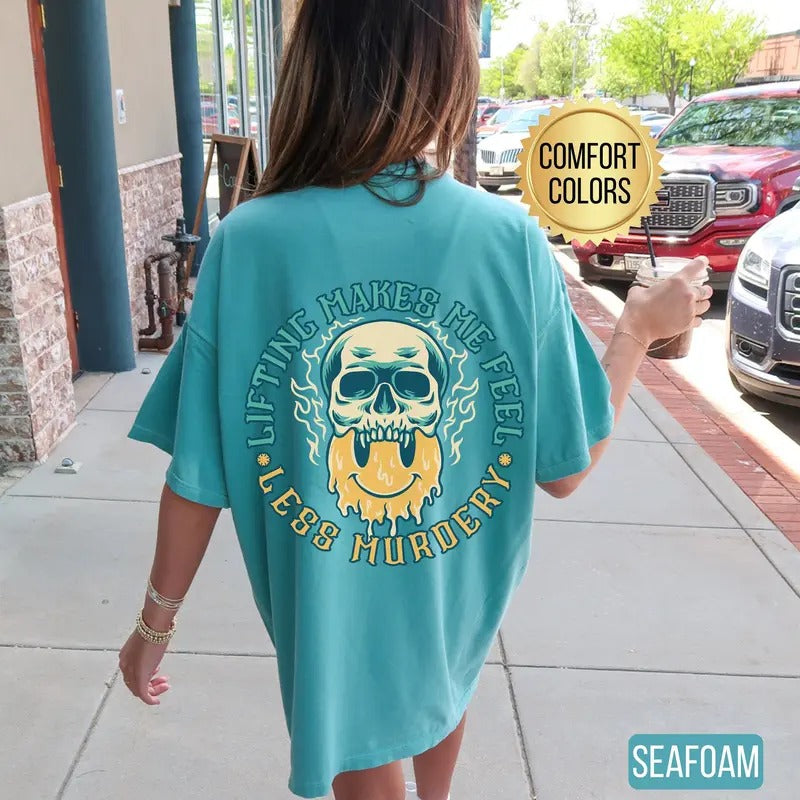 Lifting Makes Me Feel Less Murdery Shirt Comfort Colors Gym Pump Cover Gym Rat Gift Funny Gym Shirt Weightlifting Shirt Gym Lover Gift Cotton Sleeve