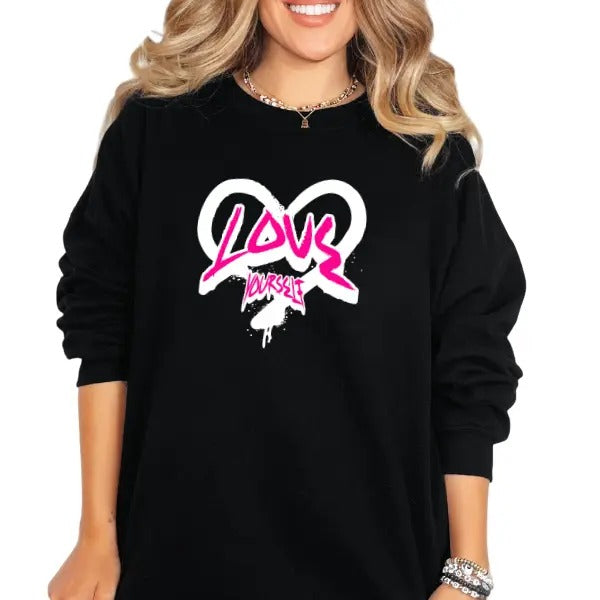 'Love Yourself' Streetwear Style Crewneck Sweatshirt, T Shirt, or Hoodie | Grunge Aesthetic Pullover Retro Vibes | Casual, Comfort, Skulls