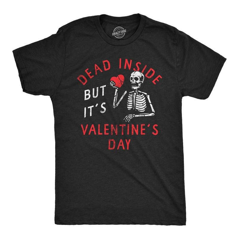 Mens Dead Inside But Its Valentines Day T Shirt Funny Depressed Skeleton Joke Tee For Guys Mens Funny T Shirts Cool Tees Soft Stylish Casual Menswear Love Apparel for Men Funny Sarcastic Short Sleeve Black -