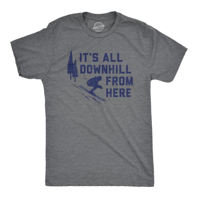 Mens Its All Downhill From Here T Shirt Funny Skiiing Joke Tee For Guys Mens Funny T Shirts Cool Tees Soft Stylish Casual Menswear Funny Sarcastic Short Sleeve Novelty Tees for Guys Dark Grey