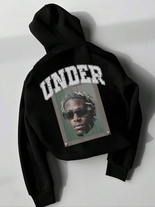 Men's Letter & Figure Print Drop Shoulder Hoodie, Fashion Casual Regular Fit Drawstring Pocket Hooded Sweatshirt for Daily Holiday Outdoor Wear, Men Clothes for Fall & Winterstyle{n002}2