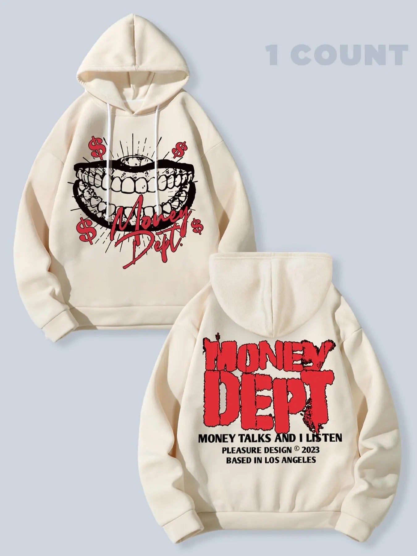 Men's Letter Print Thermal Lined Hoodie, Fashion Casual Regular Fit Drawstring Pocket Hooded Sweatshirt for Daily Holiday Outdoor Wear, Men Clothes for Fall & Winter