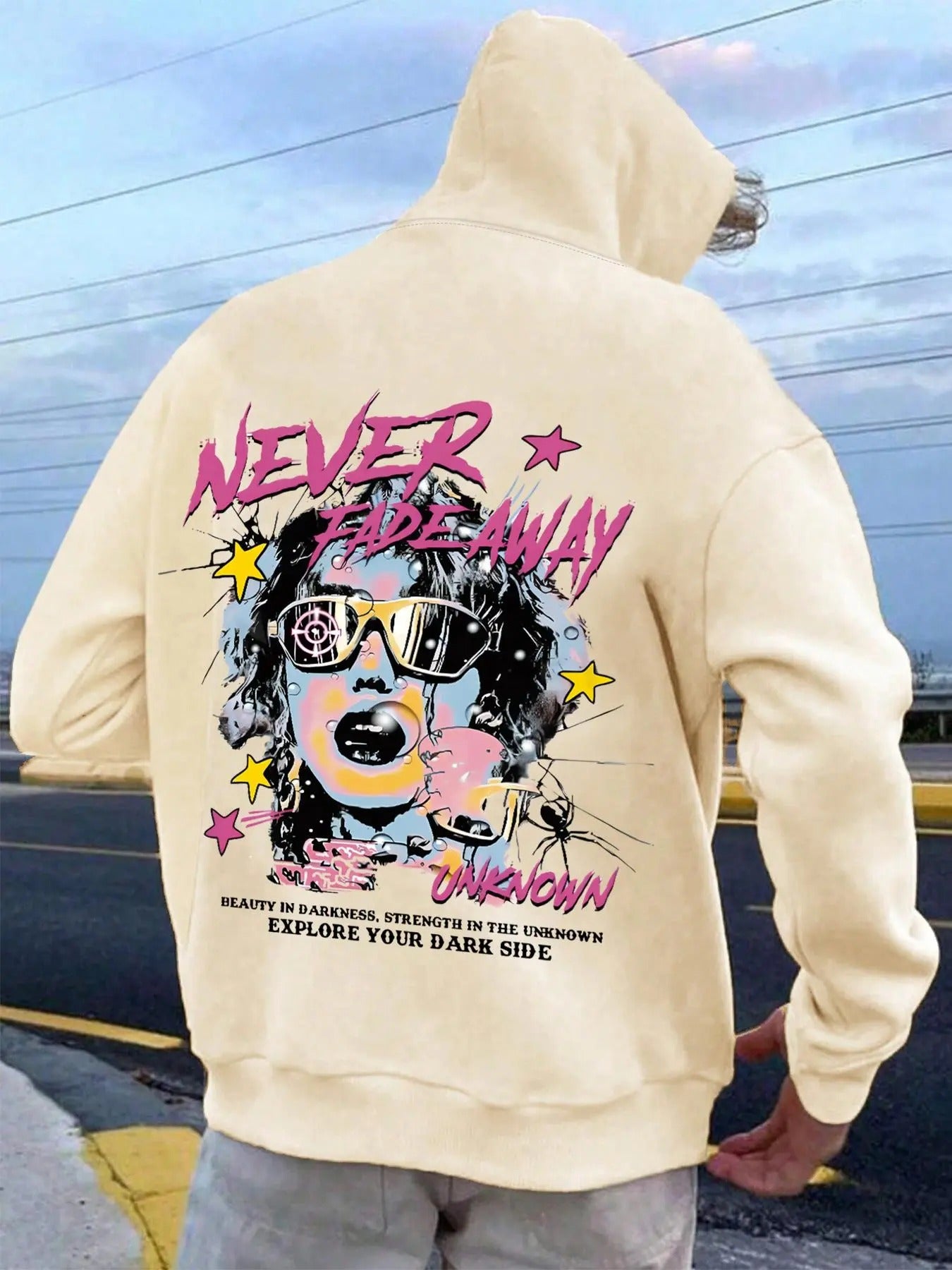 Men's Letter & Star Print Drop Shoulder Hoodie, Fashion Casual Regular Fit Drawstring Pocket Hooded Sweatshirt for Daily Holiday Outdoor Wear, Men Clothes for Fall & Winter