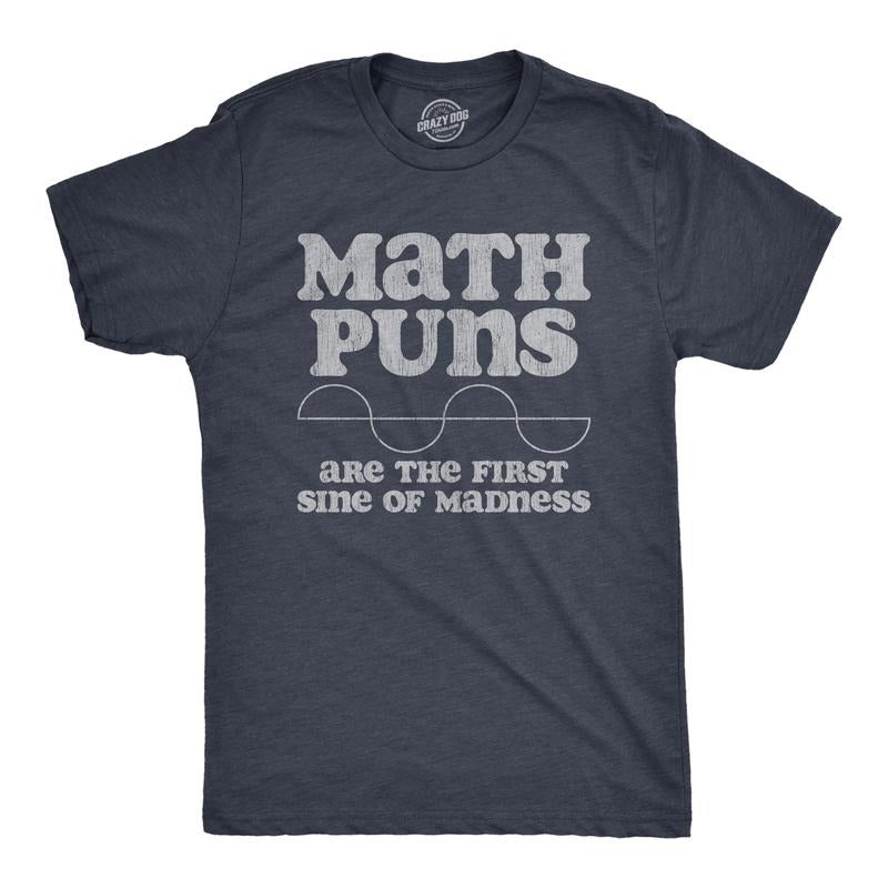 Mens Math Puns Are The First Sine Of Madness T Shirt Funny Nerdy Pun Tee For Guys Mens Funny T Shirts Cool Tees Soft Stylish Casual Menswear Funny Nerd Short Sleeve Novelty Tees for Guys Navy -