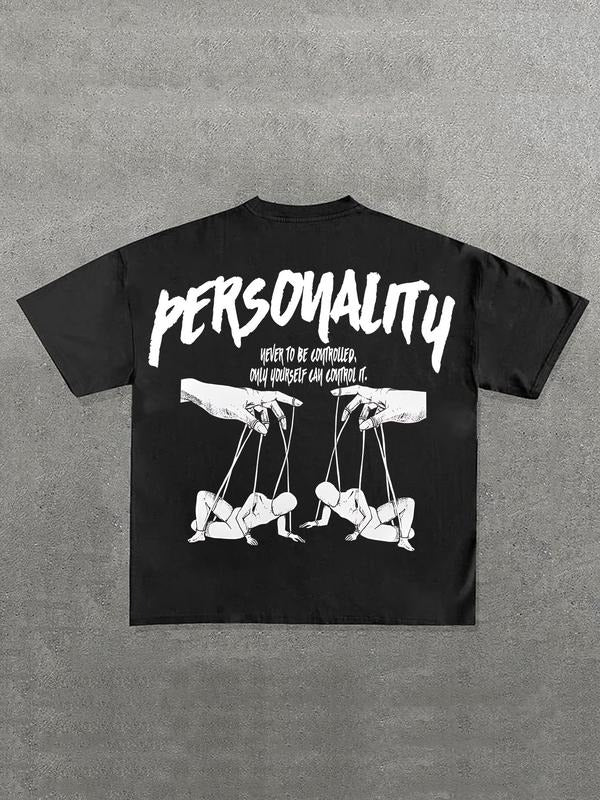 Men's Regular Fit Hand & Letter Print Round Neck Tee, Vintage Trendy Casual Short Sleeve T-shirt for Daily Wear, Men's All Seasons, Top