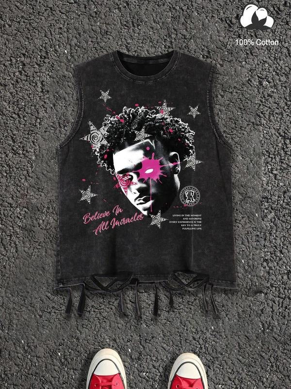 Men's Vintage Style Graphic Tank Top, Regular Fit Casual Fashion Sleeveless Top for Summer, Men's Clothes for Daily Wear, Vests, Cotton