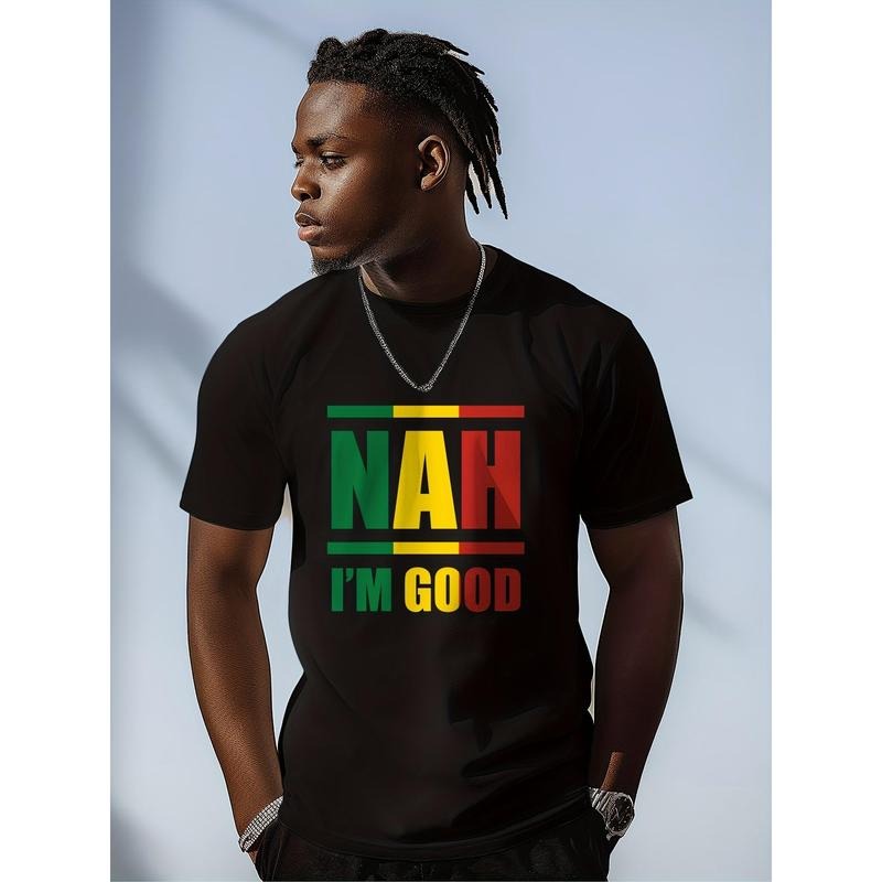 "NAH I'M GOOD" Colorful Printed Cotton Men's T-Shirt Graphic T-Shirt Men's Summer Clothing Made in USA